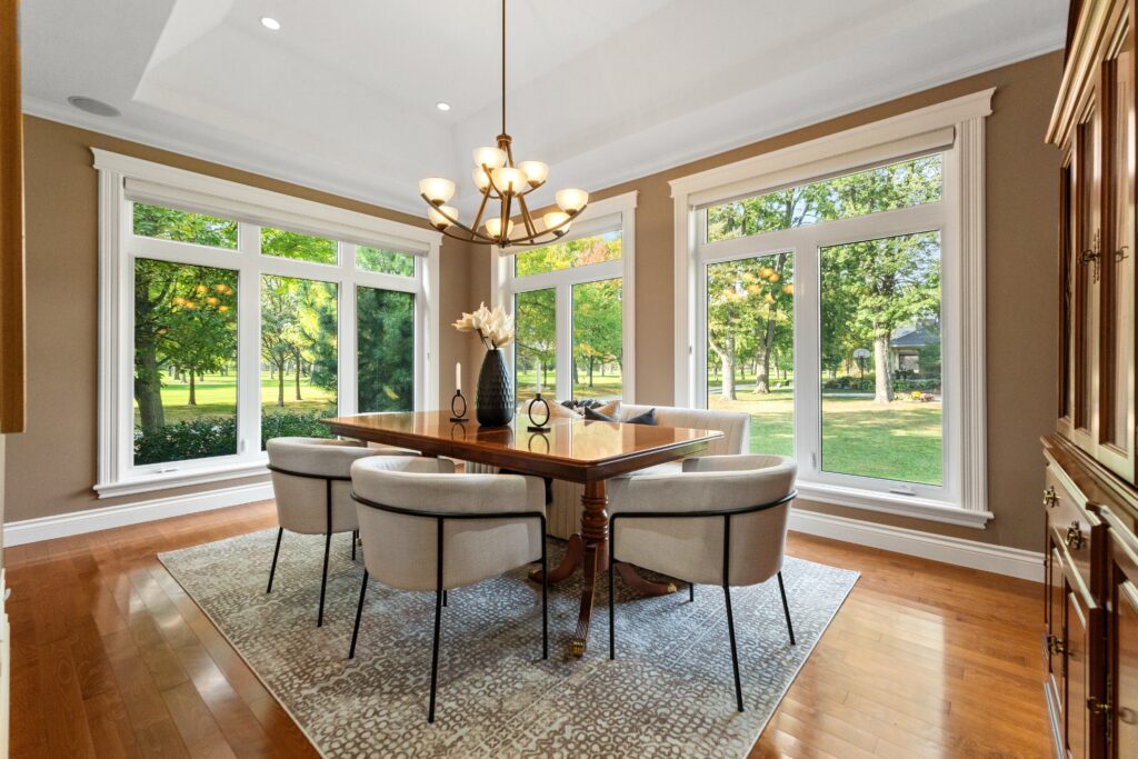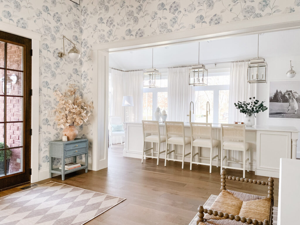 The layout is incredibly functional for our family of four — the island seats all of us, which was a must, and the entire kitchen looks out onto the golf course.