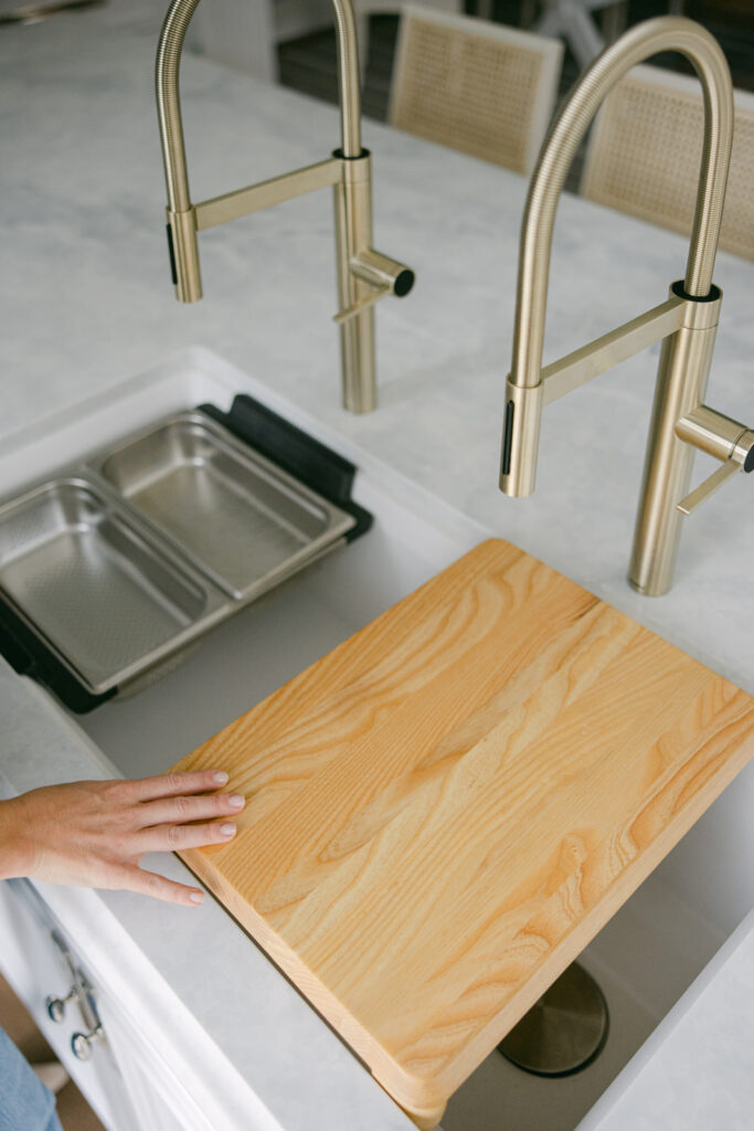 No kitchen reveal is complete without celebrating the one feature I use constantly: our BLANCO INTEOS 39″ workstation sink in white SILGRANIT.