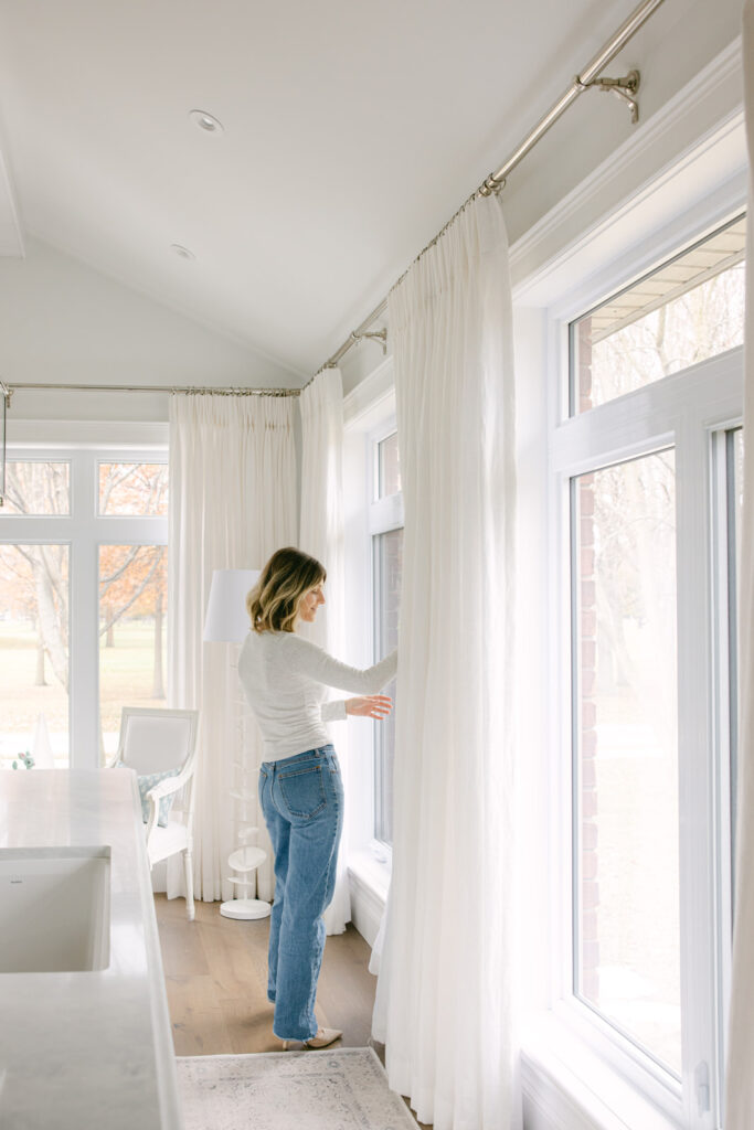 It softens all the cabinetry, frames the views, and adds that finished, tailored look that makes a space feel truly designed.